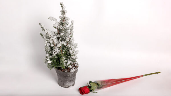 Snowy Christmas tree and Rose