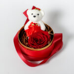 Round Box with Forever Rose and White Teddy Bear