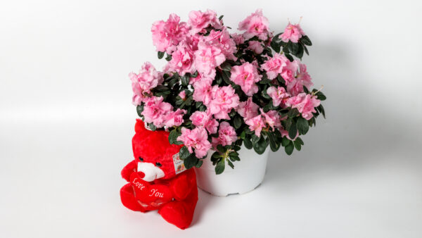 Pink Azalea with Teddy Bear - Image 1