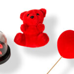 Forever Rose με Love, Μικρό Λούτρινο Κόκκινο Αρκουδάκι και Στικ Καρδιάς
