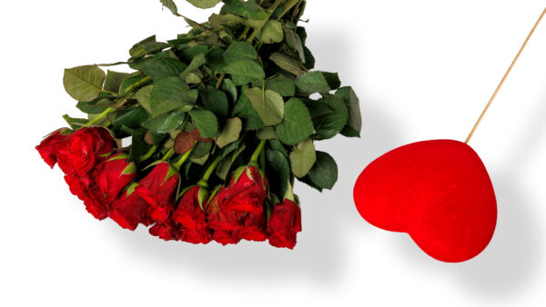 Ανθοδέσμη με 20 Κόκκινα Τριαντάφυλλα και Στικ Καρδιάς - Image 1
