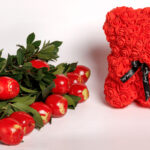Μπουκέτο με 10 μήλα κόκκινα και αρκουδάκι rose Bear