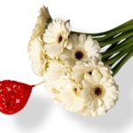 Μπουκέτο με 10 Ζερμπερινια Λευκά Και Στικ Καρδιάς