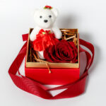 Σακούλα με Καρδιά, Λούτρινο Κόκκινο Αρκουδάκι, Τριαντάφυλλο και Forever Rose