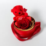 Στρογγυλό Κουτί με Forever Rose και Κόκκινο Αρκουδάκι