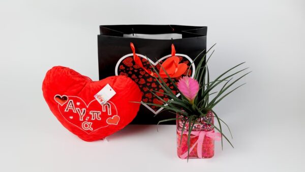 Σακούλα με Καδιά, Καρδιά Λούτρινη και Ανθούριο σε Βάζο με Πέρλες